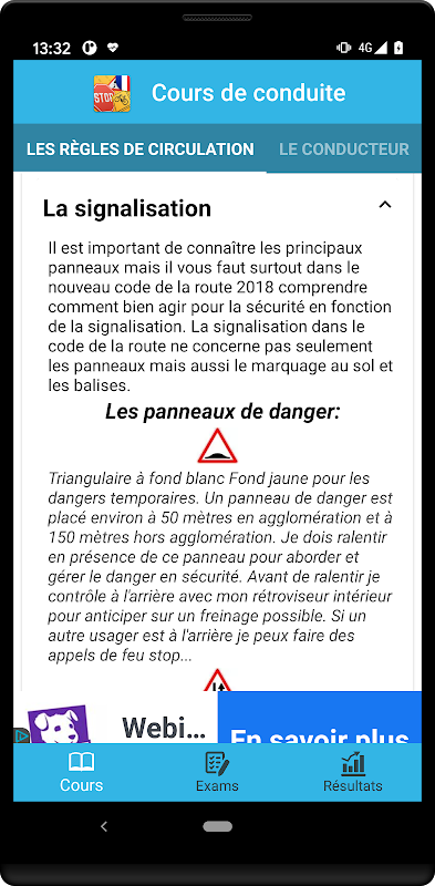 Highway Code アプリケーションには、実際の状況で学習、トレーニング、試験結果を追跡し、Highway Code に合格するためのすべての機能がまとめられています。