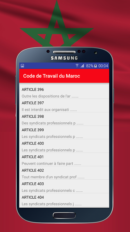 L'application "Code de travail du Maroc" présente le texte intégral, en français, du code de travail marocain publié dans le journal officiel n° 5210 du Jeudi 6 Mai 2004 selon le Dahir n° 1-03-194 du 14 rejeb 1424 (11 septembre 2003) portant promulgation de la loi n° 65-99 relative au Code du travail.