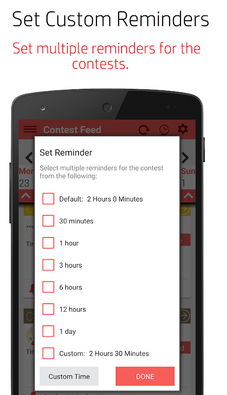 The app covers popular coding websites such as Codechef, Codeforces, Topcoder, HackerRank, HackerEarth and others. The app automatically updates all the coding contests beind held over these platforms and also allows users to see notifications for any new contest and set reminders.