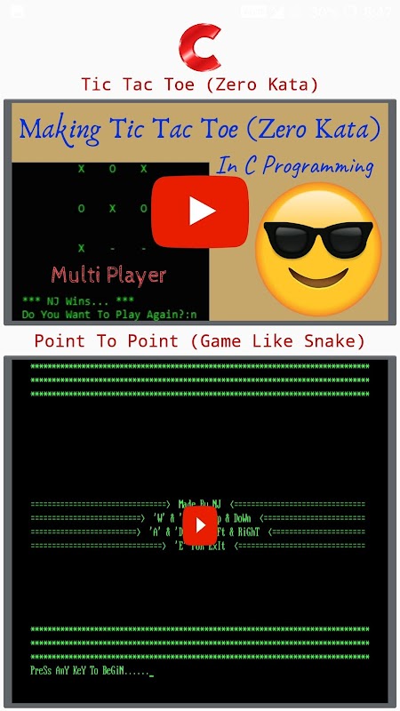 This App Will Help You How To Make Your Own Game By Coding On C,C++,Android,Java Script. This App Also Includes Codes Of Every Program Of Java,Android,C,C++,JavaScript.