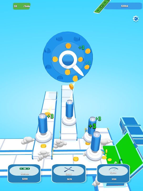 プレイヤーは、ボタンを購入してより多くのお金を生産する喜びと、生産でより多くのお金を稼ぐ喜びを体験します。カッターからお金を集める瞬間までのリラックスしたプロセスは、プレイヤーに異なるゲーム感覚を提供します。プレイヤーは、稼いだお金でより多くのボタンを購入します。プレイヤーは画面をクリックするとアクションをスピードアップできます。鉄はお金の形を取り、印刷は t に作成され、最終的には箱に蓄積されます。購入するボタンの助けを借りて、カッターの刃が加速し、より多くのアルミニウムが切断され、「速度」ボタンですべてのメカニックの速度が上がります。プレイヤーの収入は「収入」ボタンで増加します。より多くの原材料については、「カウント」ボタンを使用してください。お金を稼ぐことに終わりはありません、失うことはありません。