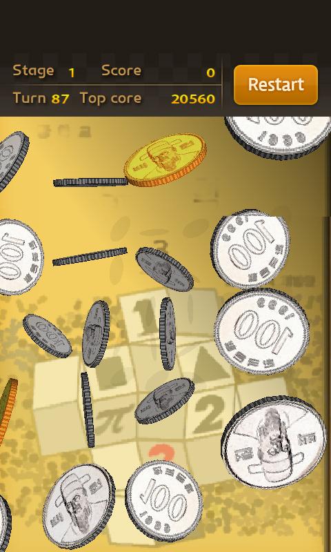 Put phone on a table or a book, and then beat the around with slight strength, you will get corresponding points if the coins are flipped. There are two modes for choice: stage mode and free mode.