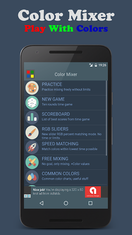 カラーミキサーは超楽しいアプリケーションです。あなたまで練習混色のマスターです。あなたはそれがあまりにも簡単だと思われる場合の難易度を変更します。あなたが好きな色の混合物を発見したまで自由に混ぜます。分で10ラウンドの試合を倒すようにしてください。あなたを止めるものは何もありません!