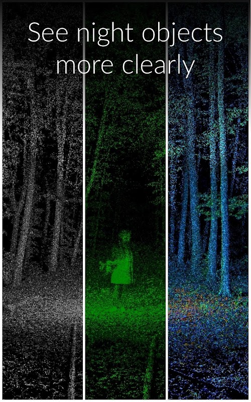 The Color Night Scanner Camera app takes bright pictures and videos at low luminosity without any additional appliances. App will digitally amplify the slightest light beam reaching the camera of your device making low light images to appear as day time.