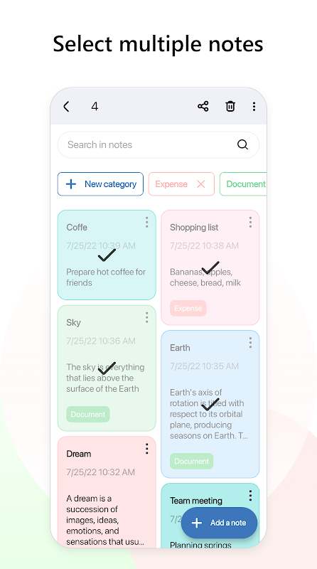 - 色分けされたメモ:仕事、プライベート、学校のメモをカテゴリーごとに色分けして、視覚的に区別できます。