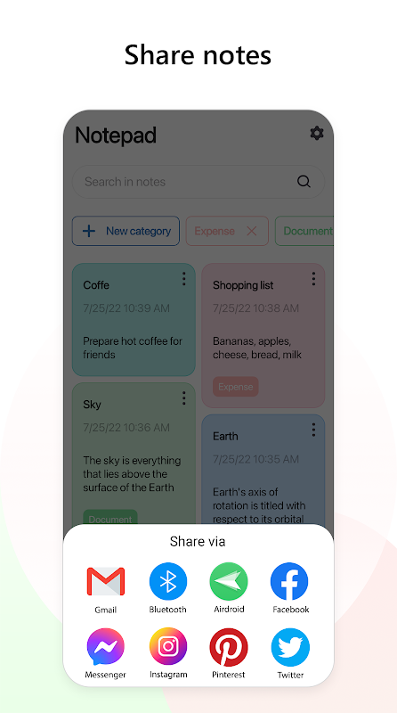 メモを素早く簡単に取り、整理整頓したいと思いませんか?Category Note は、整理整頓された状態を保ち、思考に集中できるように設計されています。ちょっとしたメモを書き留めたり、買い物リストを作成したり、日々のタスクを管理したり、あらゆる用途で役立ちます。このアプリを使えば、あらゆる情報を適切な場所に整理できます。