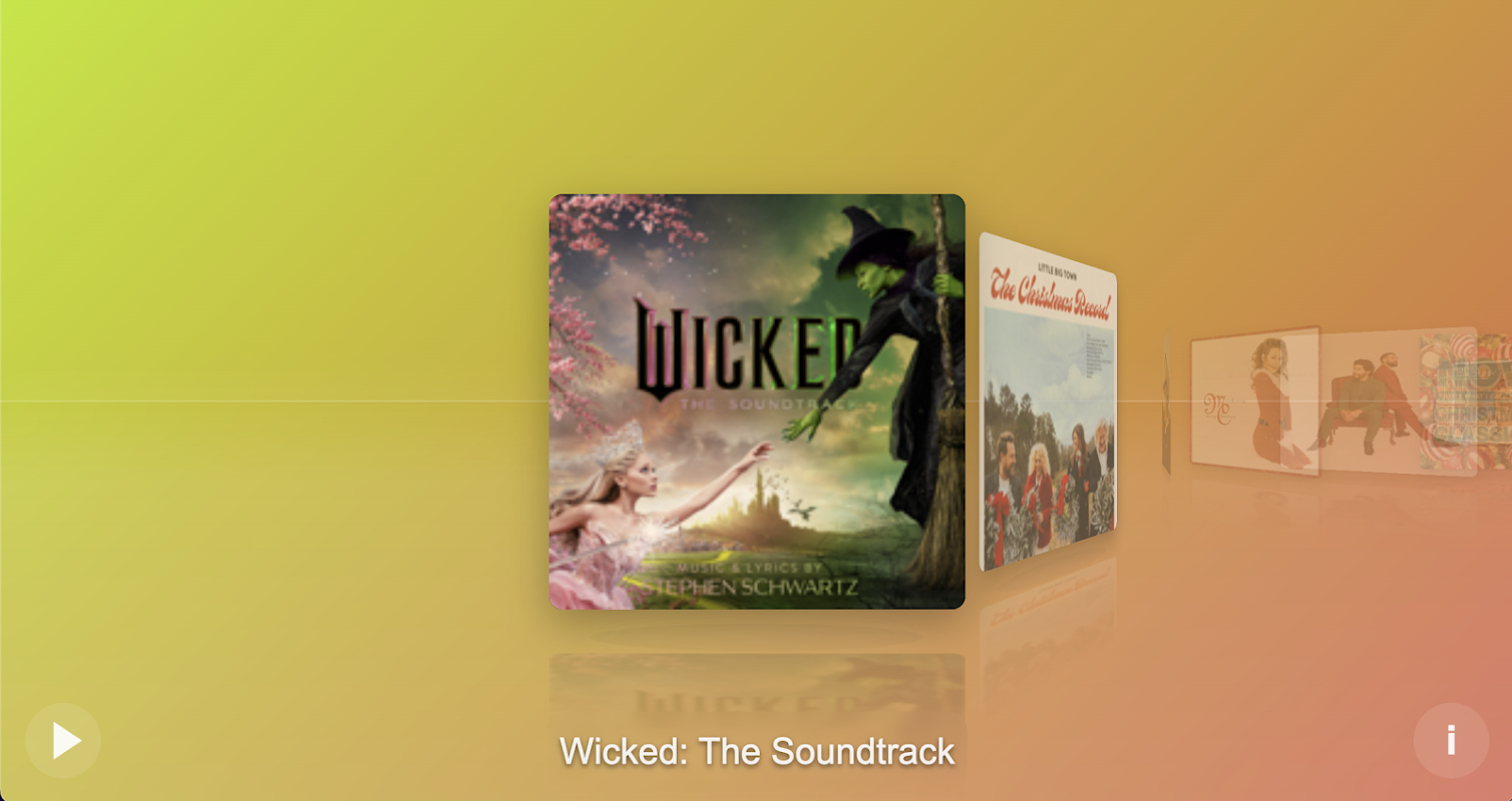 水平表示エリアでの使用に最適です。とても素敵なアルバムアートワークに現代的な素敵なタッチを加えた作品です。アルバム アートワークを全画面で再生したり、アルバムが背景ビューにシームレスに溶け込んだ素敵なアルバム アートを含むトラックをプレビューしたりできます。再生ボタンを使用してトラックを再生し、曲をプレビューします。アルバム アートをタップしてアルバムを選択し、もう一度タップしてアルバムに関する詳細情報を表示するか、下部にある情報ボタンを使用します。今日の体験を楽しんでください!