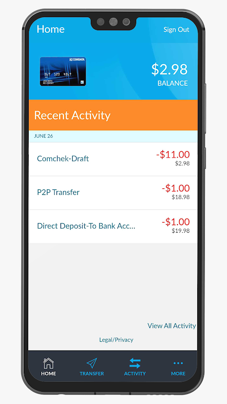 Comchek® Mobile アプリのユーザーは、モバイル アプリ内および関連する Comchek Mobile Debit Card を通じて、さまざまな機能にアクセスできます。これらの機能は次のとおりです。