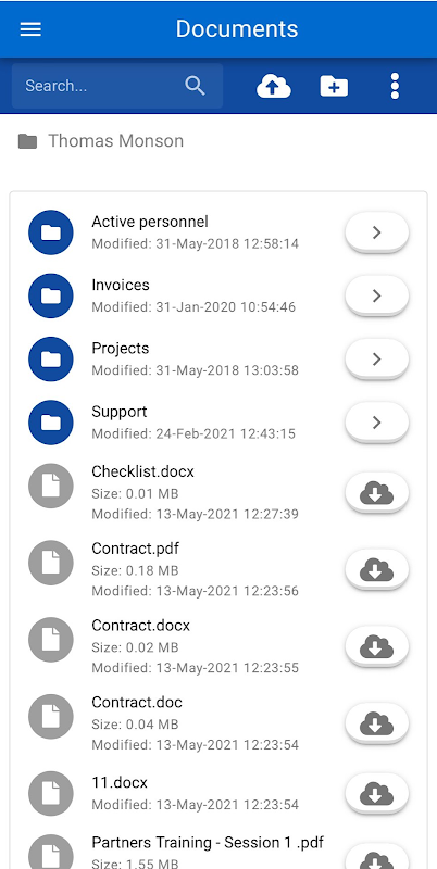 ドキュメントをアップロードしてフォルダに保存し、他のグループと共有します。ファイルを検索、編集、または移動中にダウンロードします。