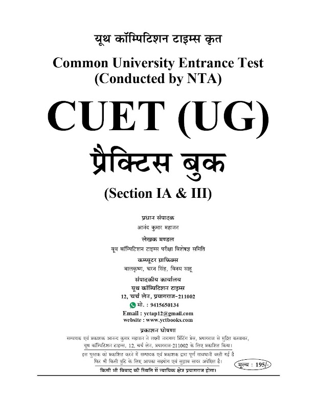 YCT expert team launches one of the best book named as Common University Entrance Test CUET (UG) 2022 PRACTICE BOOK of eBook.