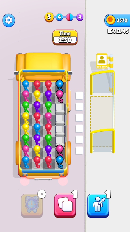 乗客の色に応じて停留所で乗客を降ろさなければなりません!すべての乗客を正しい停留所で降ろすように注意してください!