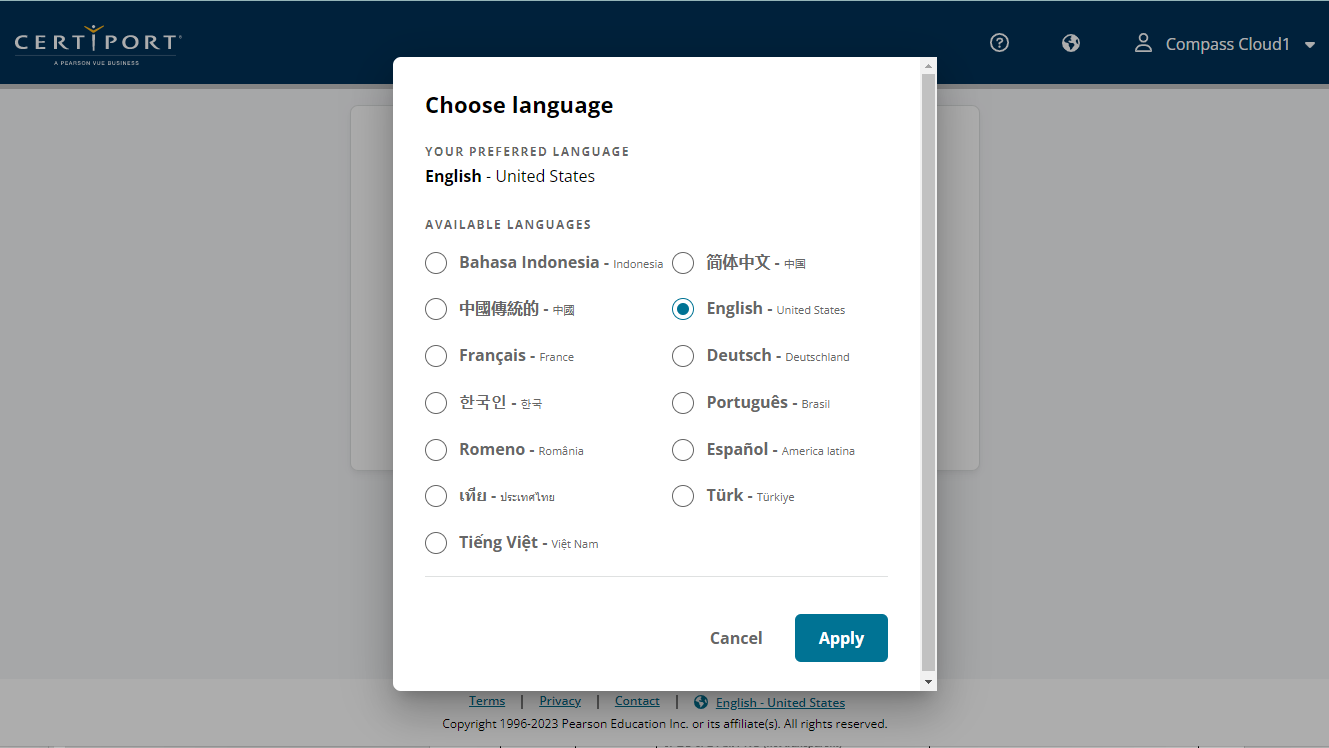 このバージョンの Compass は、テスト センターおよび/または教室内での使用を目的としています。