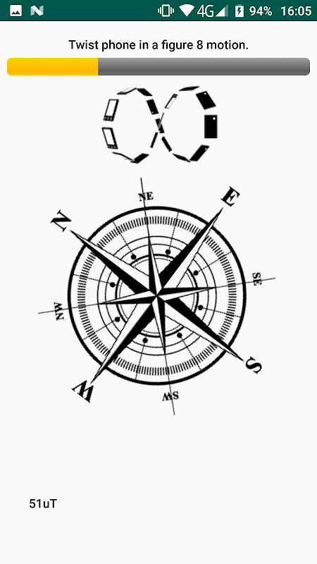コンパスアプリとキャリブレーション。このアプリでは、精度を高めるためにコンパスキャリブレーションが必要です。