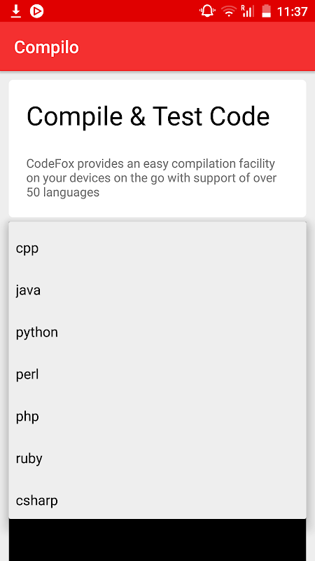 Compiloはあなたのためにここにあります。当社のユーザーフレンドリーなインターフェースはあなたに迅速かつ簡単に編集機能を提供します。 、あなたのコードを入力してテストケースを入力して、50以上の言語のサポートをすばやく結果を得ます