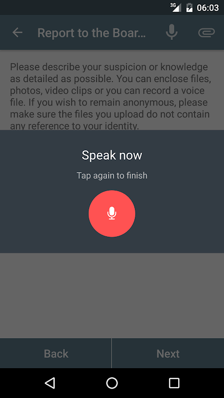 The app also acts as a whistleblowing portal, letting you report whistleblowing concerns to your company completely anonymously from within the app.