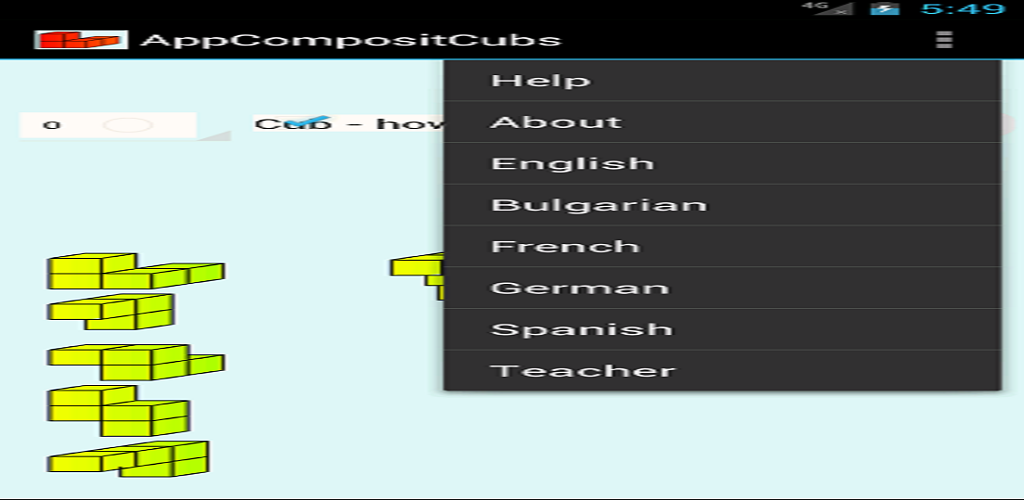 複合図形を描くゲーム。7つの図形でつながった27個の立方体を描きます。