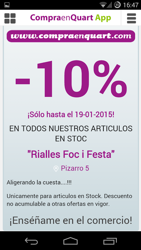 新しいCompraenQuartとCompraenQuartアプリ、あなたはトレーダー協会クォートプラットフォームに参加しているショップからすべての提供、割引、イベント、ニュースやプロモーションを見つけることができる場所をご紹介します。