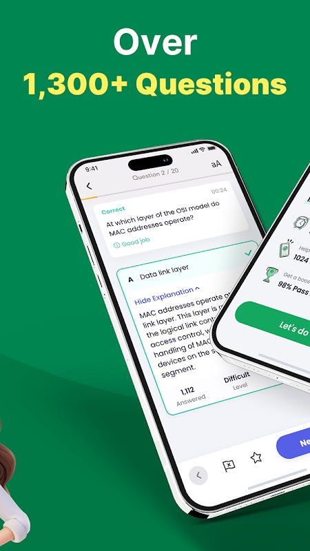 - 詳細な解説付きの1,300問以上の専門問題を練習