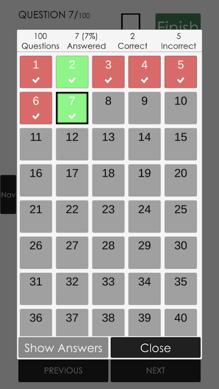 ランダム化された質問による 5、10、20、40、50 問の試験をすぐに開始できます。