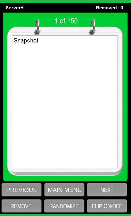This application has several flash cards helping you prepare for the CompTIA Server+ exam. Each flash card contains a multiple choice question with an answer on the back when you flip it. You have the ability to randomize the cards and remove cards as you go, helping you to study more efficiently.