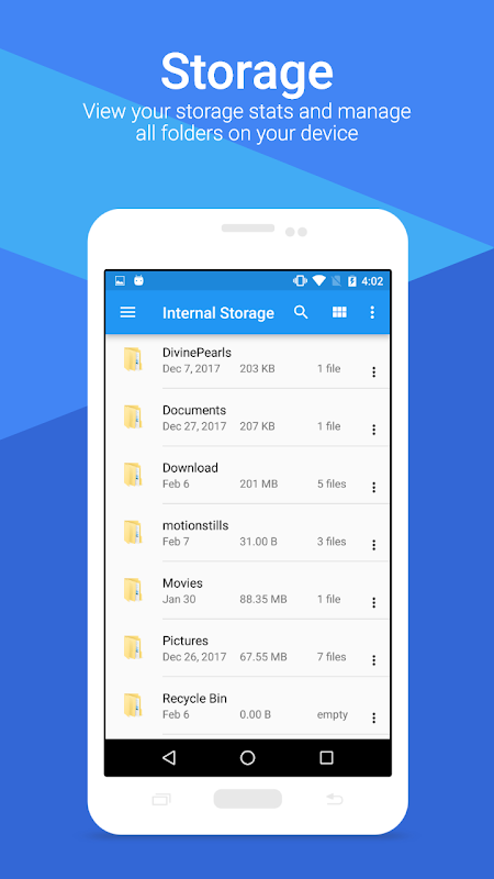 Manage your files (file explorer) like you do on your desktop or laptop using Multiple Select, Cut/Copy/Paste, Move, Create, Delete, Rename, Search, Share, Send, Hide, Create Shortcut, and Bookmark;