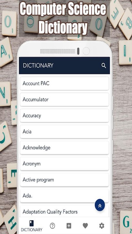 コンピュータサイエンス辞書は、誰でも簡単に理解できる方法でコンピュータサイエンスの用語を定義しています。このコンピュータサイエンス辞書アプリは、文房具店やコンピュータサイエンスの教科書にある単純な辞書ではありません。この無料のコンピューターサイエンス辞書アプリは、誰もが短時間でコンピューターサイエンスの言語を学ぶことができるように記述および説明されています。コンピュータサイエンスとコンピュータの各用語には、音声機能が付いているため、専門用語の背後にある基本的な単語を認識できます。