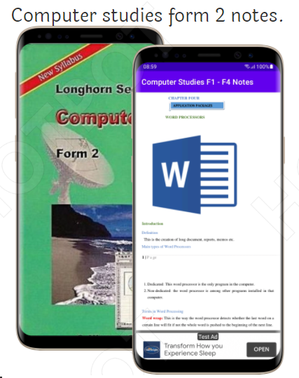 コンピュータ研究:F1 - F4ノートアプリは、コンピュータの研究を特徴1を形成 - 4 KCSEはノートを標準化しました。アプリケーションは、コンピュータの研究における知識と学習者を装備するように設定されています。アプリケーションは、シラバス内のコンテンツのコンピュータの研究を組み立てました。コンピュータ研究:F1 - F4ノートには、次のトピックがあります。