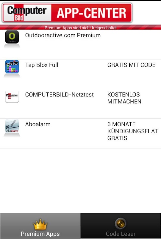 Im COMPUTERBILD App-Center finden Sie die exklusiven Premium-Apps aus der COMPUTERBILD. Per Freischaltcode, z.B. von der Rückseite der Heft-CD/DVD-Hülle schalten Sie Ihre persönlichen Vorteilsfunktionen frei und können diese im vollen Umfang nutzen.
