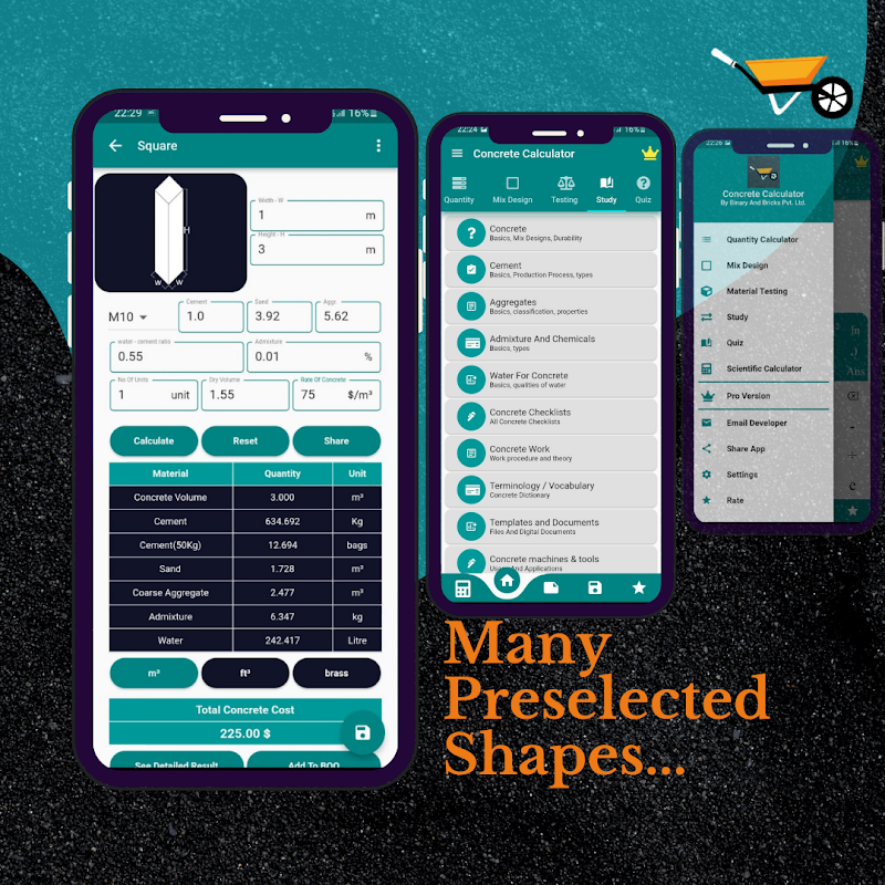 コンクリート電卓オールインワンは、帝国測定システムとメートル法測定システムで計算できます。アプリはテーマの数もサポートしており、必要な色を選択できます。コンクリート電卓オールインワンは、具体的な計算のための無料の Android アプリケーションです。アプリケーションではシンプルなツールを使用して、建設業界の計算を簡素化します。