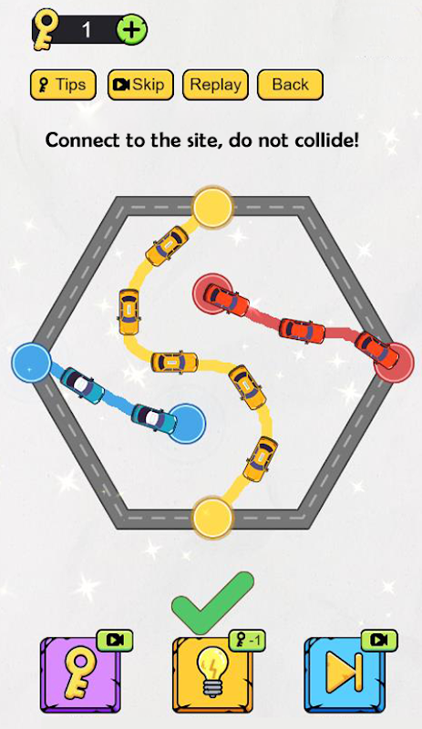 ゲームでは、プレイヤーはさまざまな車両ルートの障害物を見ることができます。プレイヤーは指を使って線を引き、各車が衝突することなく目的地に到達できるようにし、レベルタスクを完了し、レベルを通じて報酬を獲得し続ける必要があります!