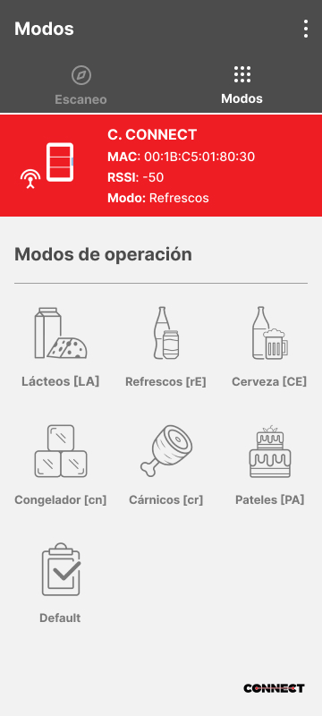 トーリーの冷凍設備の設定に必要なアプリケーションを接続します。カンビアの特徴的な機能: パステレロ、ラクテオス、セルベセロ、リフレスケロ、カルニコス。
