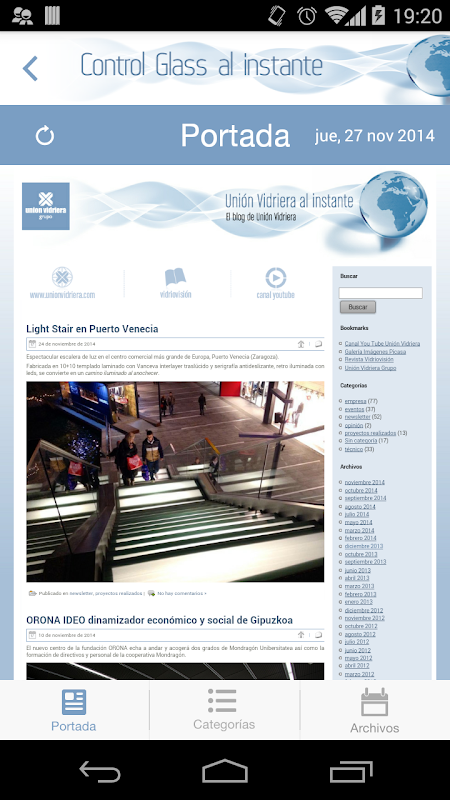 Tienes la opción de ver los artículos correspondientes a las categorías: Empresa, Eventos, Newsletter, Opinión, Proyectos Realizados y Técnico. Te recordamos que también puedes seguir acceder a toda esta información a través del blog de Control Glass: www.unionvidriera.com/blog