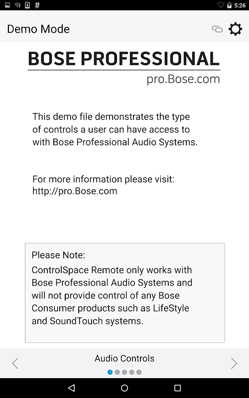 Bose® Professional ネットワーク電子機器を使用するオーディオ システムのエンド ユーザー向けに設計された ControlSpace® Remote アプリは、直感的でパーソナライズされたワイヤレス コントロールを提供し、インストールされているサウンド システムの利便性と利用率を高めます。