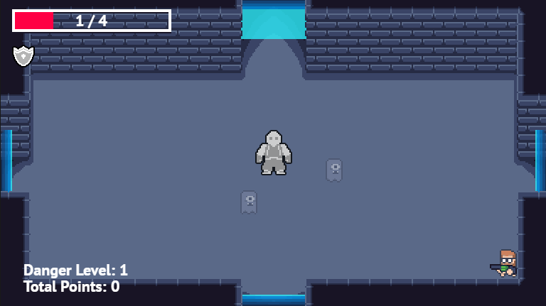 リーダーボード、ランダム化された部屋、アップグレードを備えたトップダウンのシューティング ゲーム。