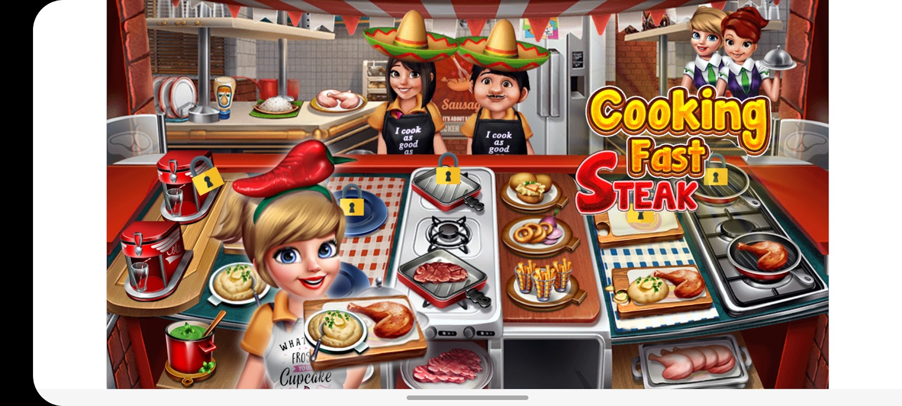 The fun new kitchen game! The high tense and awesome gameplays brings you a fascinating experience and makes your time full of awesome cooking moments.