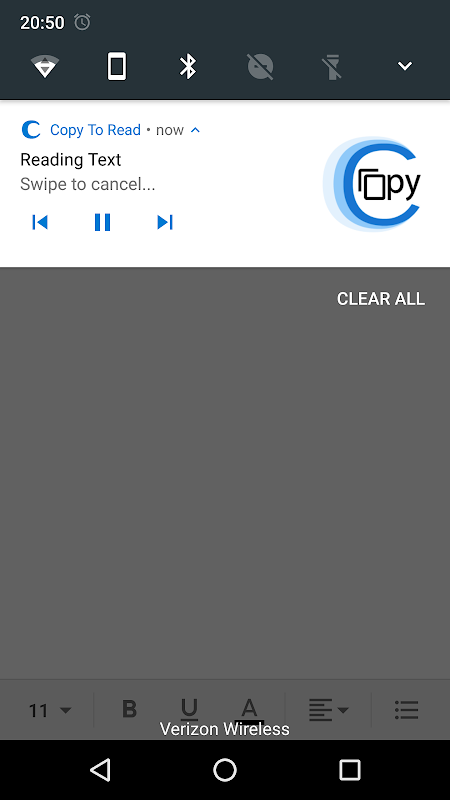 コピーは読みで - テキストを音声にコピーしたテキストは、スピーチのテキストをあなたに戻って読まれるように、単にいくつかのテキストをコピーし、耳を傾けます。このテキスト読み上げアプリは、あなたが話さたいテキストをコピーする機能を任意のアプリからテキストを読む限り、アプリの助成できます。それはあなたに読み上げテキストを持っている任意の簡単なことではありません。それはあなたに読んで持っているアプリにテキストをインポートする必要はありません。テキストはあなたに読み込まれている間、通知がいつでも読むのをやめたり読ん一時停止する一時停止ボタンをタップすることでタップすることができることが表示されます。また、あなたがコピーしたテキスト内の文章をスキップする通知を前方にスキップし、後方のボタンをクリックすることができます。だから、偶然あなたがスピーチへのテキストをあなたに話されたくないテキストをコピーを心配する必要はありません。