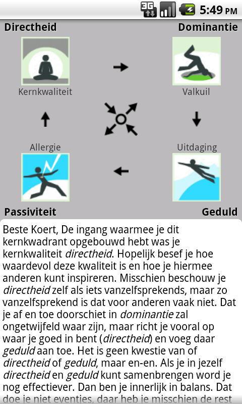 このアプリケーションはユニークなもの、他人や自分の行動であなたの毎日の相互作用を反映することができますモジュールデイリー反射、である。その後、アプリケーションは、以前に作られたコア象限とあなたが反省している問題との間に相関関係を探します。その後、どちらかのフィードバックを与えるか、または新しいコア象限をするあなたを招待します。アプリケーションは、あなたがあなたの第一のコア象限を建てたとき、あなたの増加awarenesの恩恵を受けるために、毎日の練習に、なった初期の洞察を翻訳するのに役立つように設計されています。どこかのコアの資質上のダニエルOfmanの最新の本の中で "ファンシー会議ここで私..!?"それが言及されている: "人々が彼らのコアの資質を自覚するために世界が待っているされていない世界が彼らの意識が生産性を向上させると有意義な相互作用を持っていても構わないと思っている人々のために待っている自分自身について意識はあなたが何に影響を及ぼさない場合。あなたは人々に対処する方法は、コア象限を構築しても意味をなさないと役に立たない運動です。 "