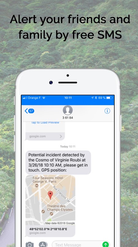 A first level of free services allows to alert designated emergency contacts by sms and by email.