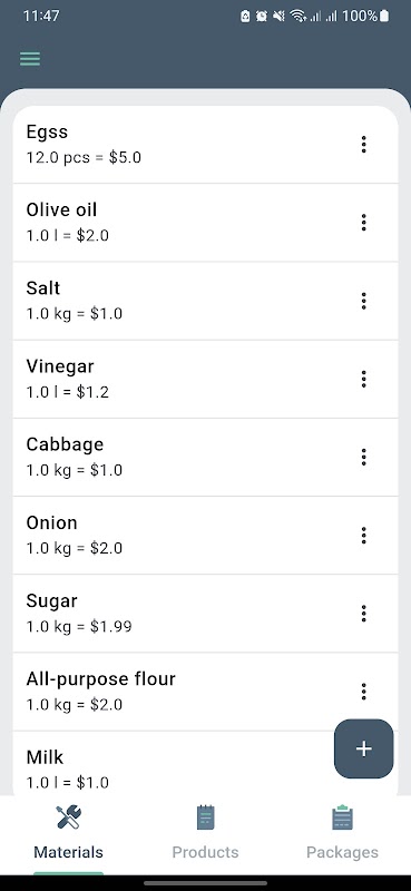 - パッケージを作成:材料と製品をグループ化して、バンドルや特別セットのコストを計算します。