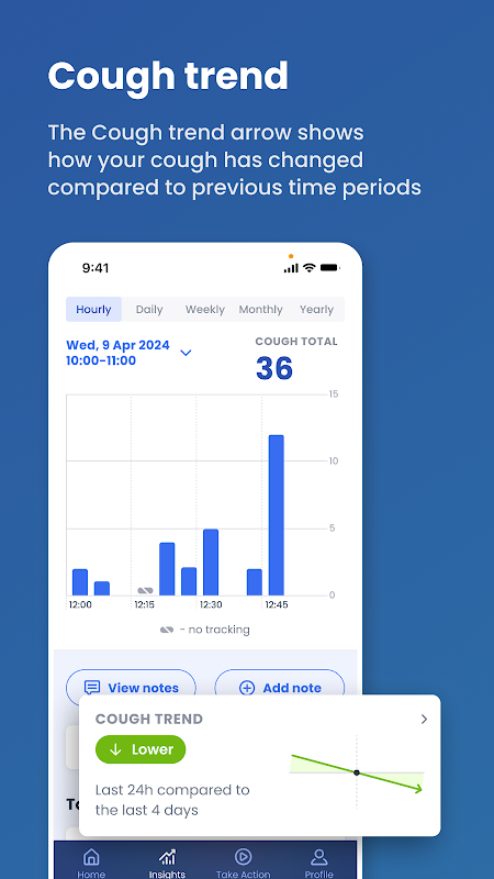 CoughPro は、携帯電話で受動的かつ控えめに咳を検出して定量化することでこの問題を解決し、咳の頻度とパターンを把握します。咳の数を即座に表示することで、自分の咳を明確に把握できます。