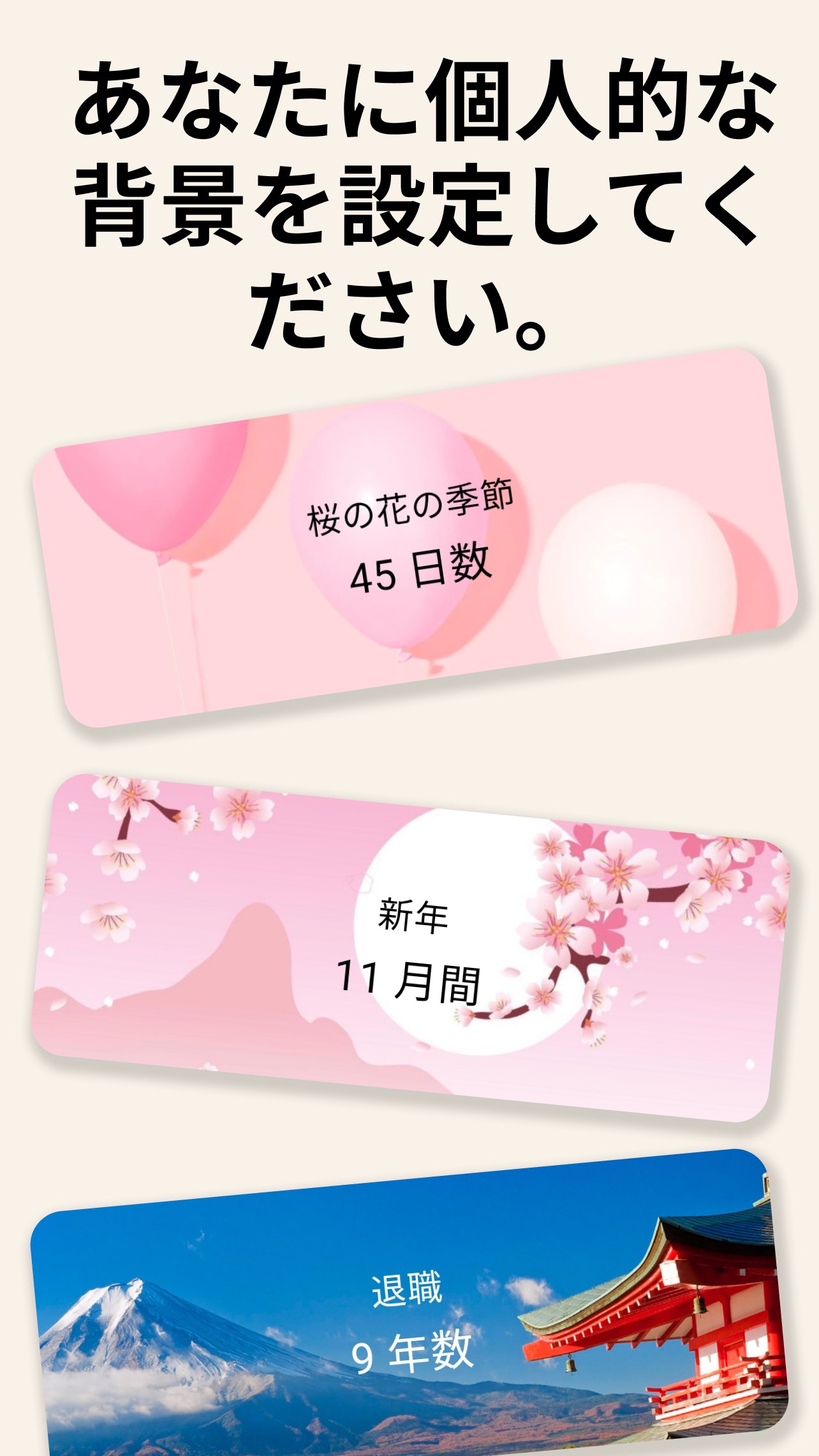 ホーム・ロック画面対応。サイズとレイアウトを選んで、いつでも残り日数を一目で確認
