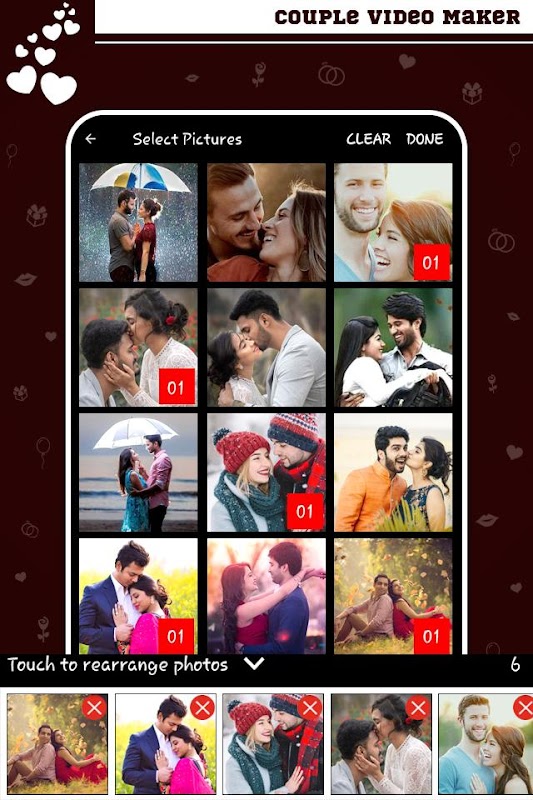 ロマンチックな愛の写真エフェクトビデオメーカーアプリは、わずか数ステップで写真、音楽、アニメーションを使用してスライドショースタイルのビデオを作成し、美しい愛の写真を選択し、新しいフィルターと音楽を追加して、すぐに独自のビデオを作成します。