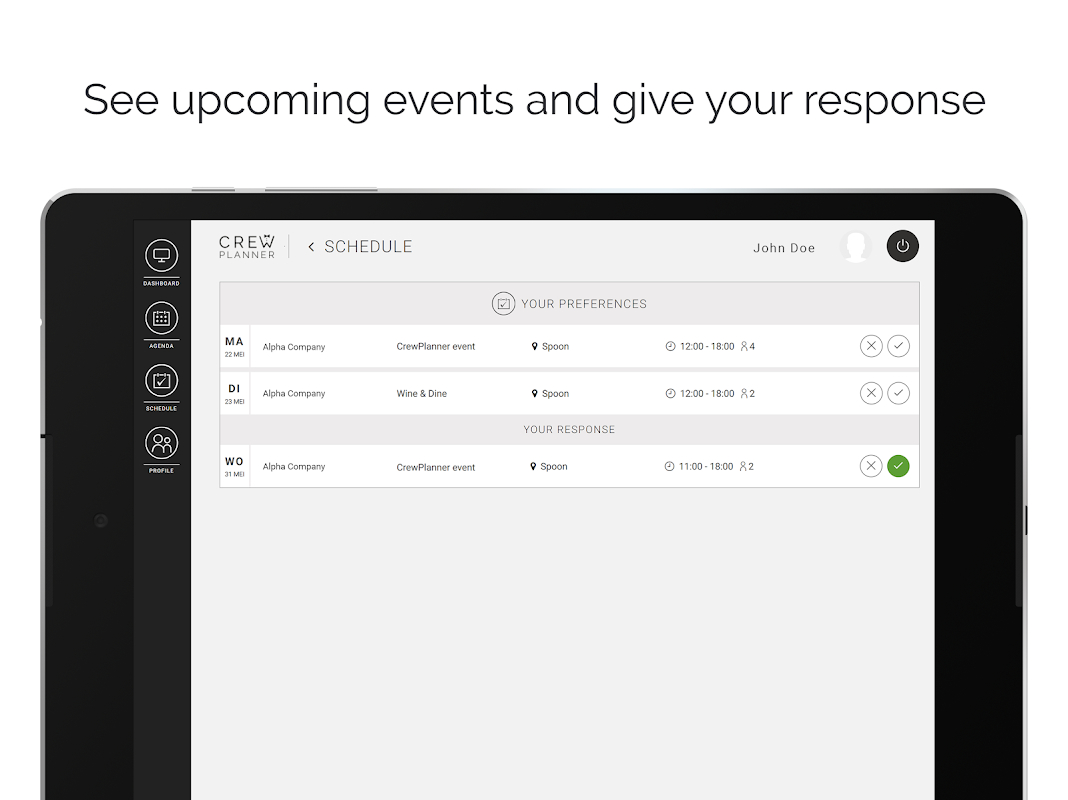 CrewPlannerを使用すると、スタッフの採用、データの管理、スケジュールの準備、財務の追跡、ドキュメントの作成、契約書への署名、時間の登録、すべてのエクスポートを簡単に行うことができます。私たちのソリューションは、時間とお金を節約しながら、エラーの可能性を最小限に抑えます。