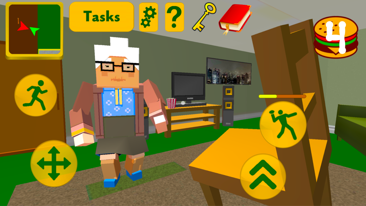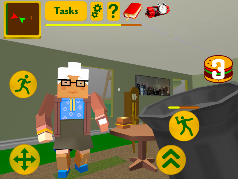 - Popular Escape gameplay! Explore the huge mystic pixel house, seek for useful objects, throw objects at the evil granny for stunning and at the windows to break them!