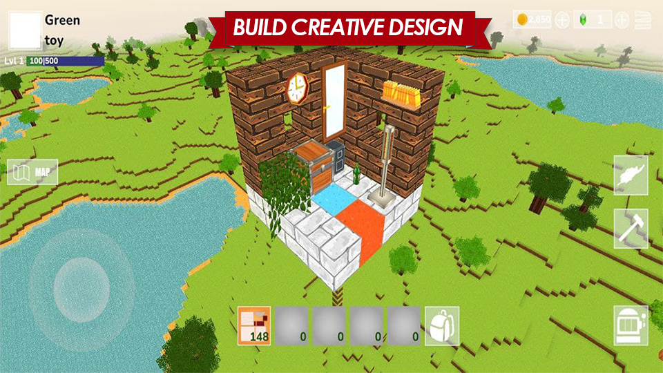 Build your world, use your own creativity to build or choose pre-designed structures with blue prints.