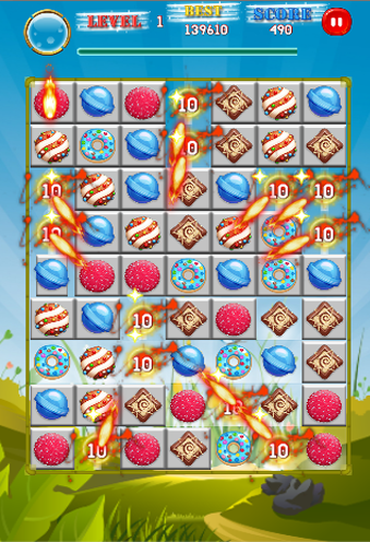 キャンディを消去することによってポイントを取得します。あなたはより多くのポイントを得るためにキャンディの長いチェーンを作ることができます!