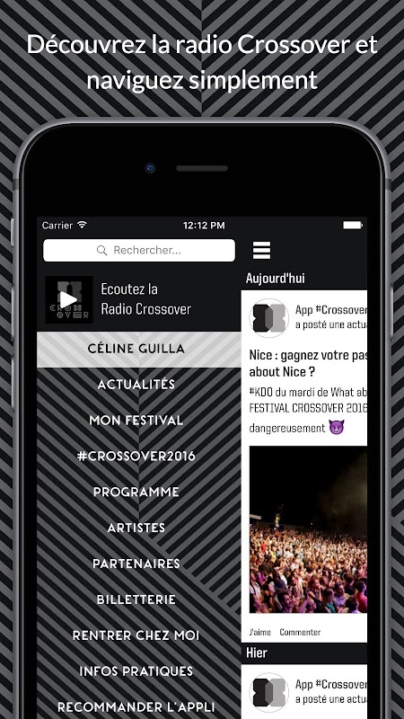 Avec l’application Crossover, restez connecté pour être informé des dernières news concernant le festival : infos pratiques, billetterie, line-up, photos...