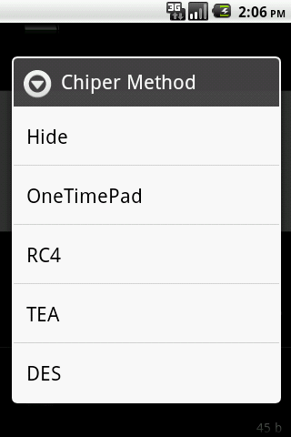 You can choose between simply hide your files to a complete DES encryption.
