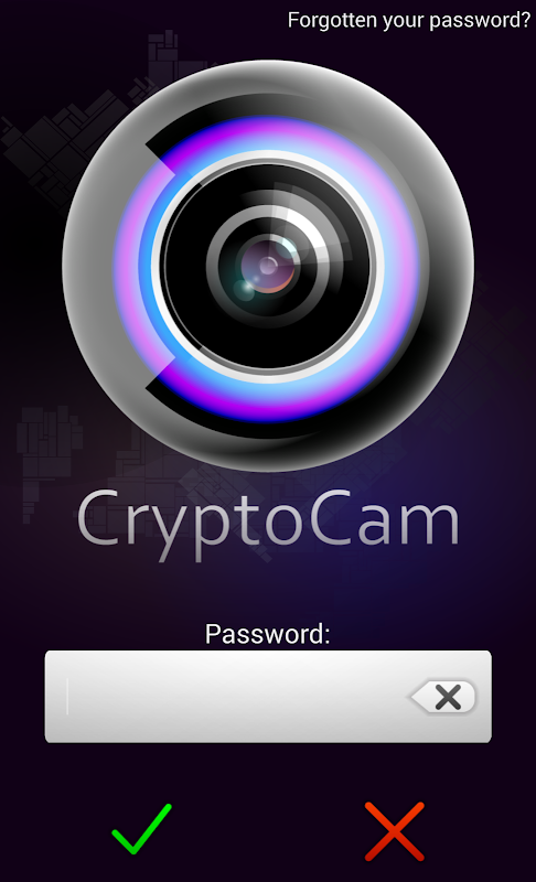 Even though since version 2.0 you do not need to enter your password to take photos, these photos will still be safe. Ingenious use of asymmetric encryption allows CryptoCam to store data securely without knowing the password. The private key, which allows decryption of these data, is protected using the key derived from your password.