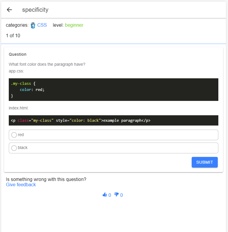 ⭐ クイズは初級、中級、上級のレベルに分類されているため、自分のペースで CSS スキルを向上させることができます。